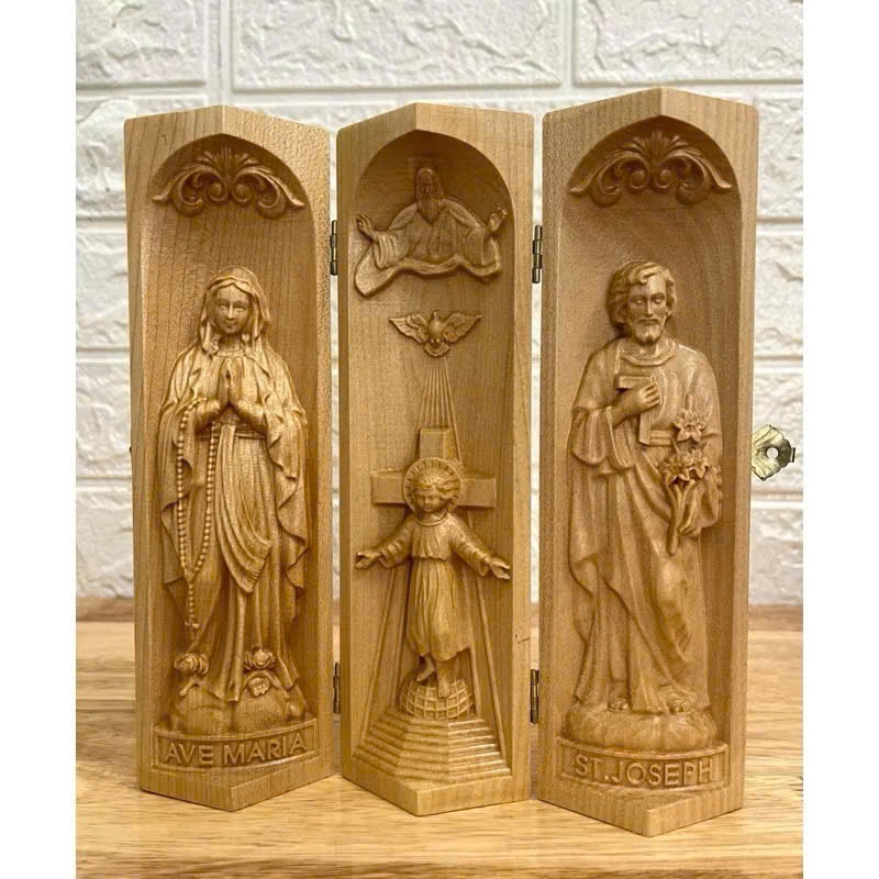 Bộ bàn thờ công giáo mini Chúa 3 Ngôi - Đức mẹ Lộ Đức