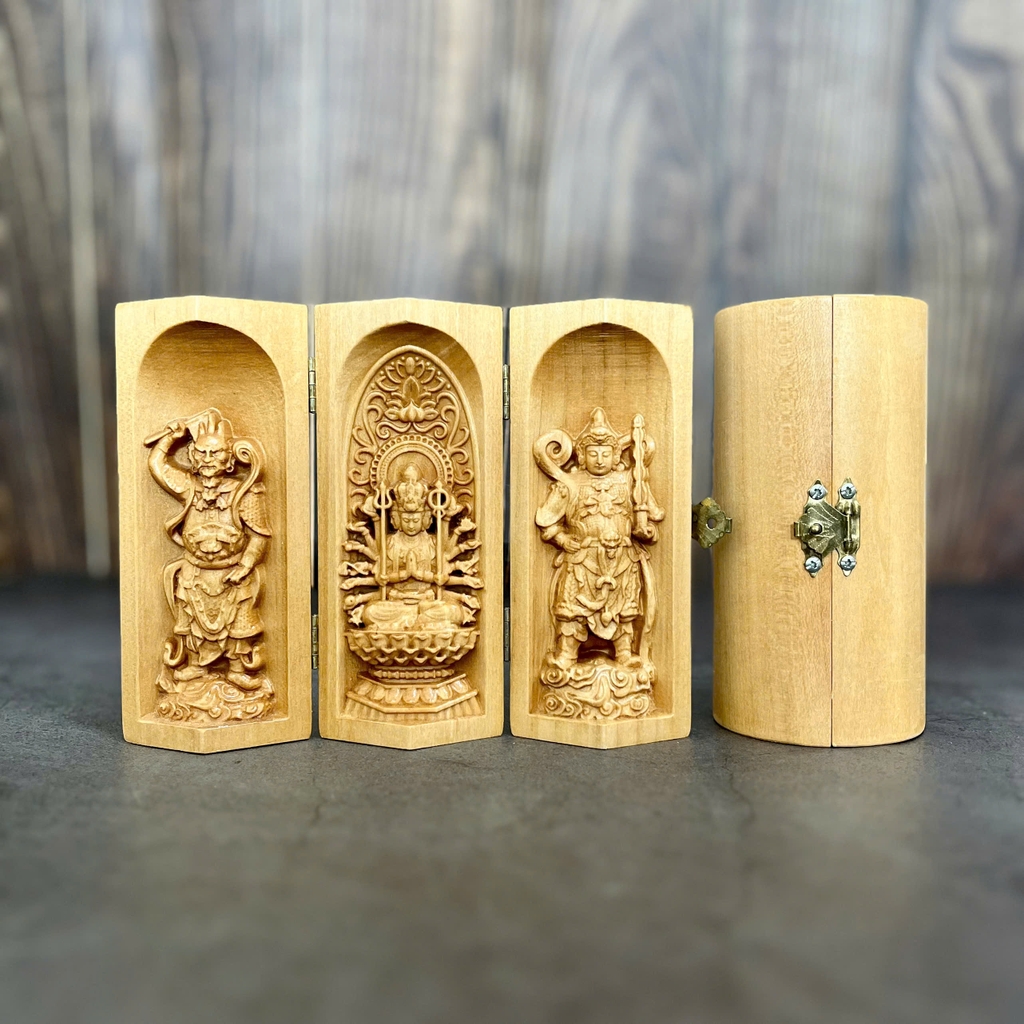 Bộ Tượng gấp gọn gồm 3 Vị : Tiêu Diện Đại Sĩ – Thiên Thủ Thiên Nhãn Bồ Tát – Vi Đà Hộ Pháp
