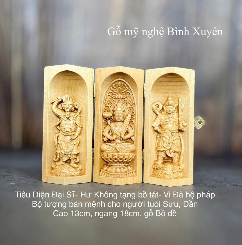Bộ Tượng gấp gọn gồm 3 Vị : Tiêu Diện Đại Sĩ – Hư Không Tạng Bồ Tát – Vi Đà Hộ Pháp