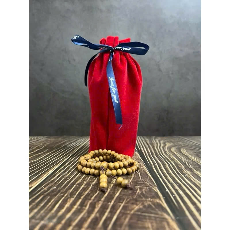 - Mỗi bộ tượng được tặng 1 túi nhung đỏ bảo vệ gỗ và 1 chuỗi hạt gỗ bách xanh 108 hạt 6 li – thích hợp để niệm Phật, tụng kinh, hoặc làm vòng phong thủy hộ thân.